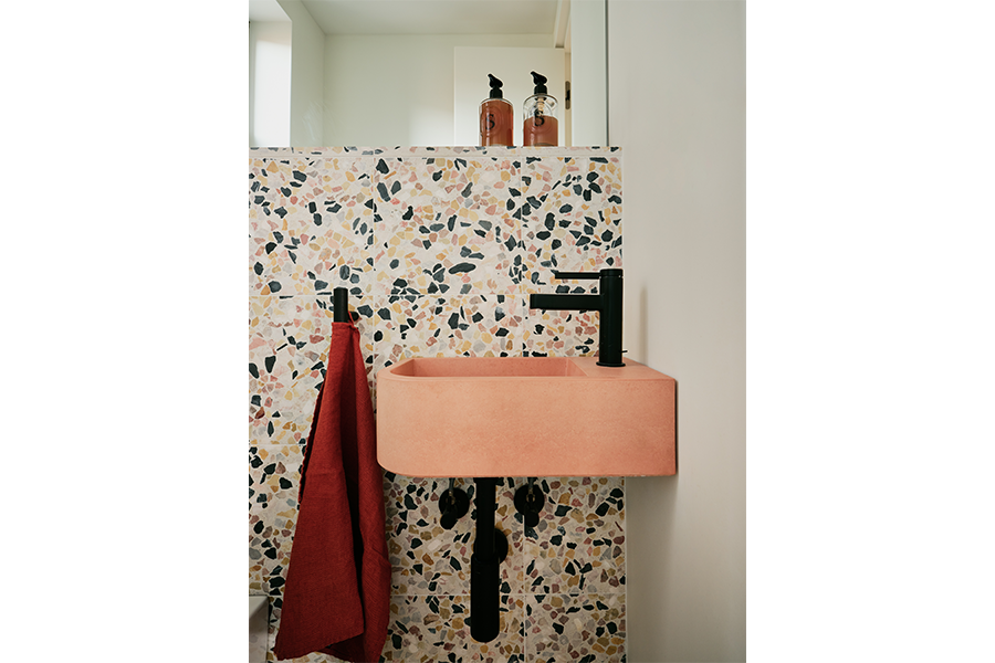 Perhaps the most emblematic design choice lies in the selection of Concrete Collaborative’s terrazzo tiles. By opting for a bold pattern expressed through a timeless material, the clients achieved a rare balance: introducing visual interest without compromising the home’s disciplined sense of tranquility. That interplay of expression and restraint carries through the entire project—from the preserved brick fireplace to the meticulously planned storage that allows the clients’ everyday objects to coexist without overwhelming the space.